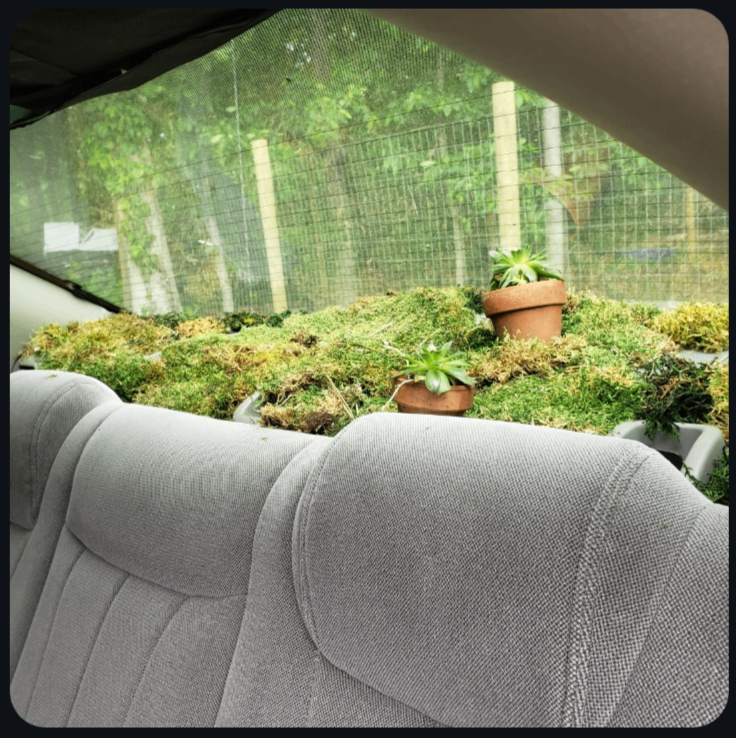 A personal project I am very proud of. I transformed a 2001 Chevy Malibu into a whimsical space where plants are thriving. The car was given to me after my cousin passed. Tino helped cultivate the idea to be more involved in nature and has since inspired me to pursue various passion projects. I made this in memory of him. It is a project that the community is welcome to contribute to; feel free to add a plant, or paint if you feel more inclined to write or draw.